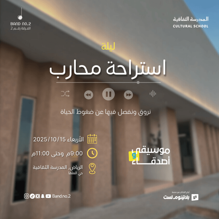 We’re waiting for you at Warrior’s Rest Night! Band No. 2 | Warrior’s Rest Night in Riyadh at RH6X+FF Al Malqa, Riyadh events Arabic Events Threads Culture