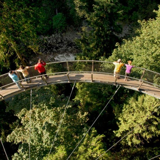 Tickets Ticket for 1 Adult (18–64) Ticket for 1 Senior (65+) Ticket for 1 Youth (13–17) Ticket for 1 Child (6–12) All tickets include: – Entrance to Capilano Suspension Bridge Park – Access to the Capilano Suspension Bridge – Access to the Treetops Adventure – Access to the Cliffwalk – Complimentary ‘I Made It!’ souvenir certificates – 10-minute History and Nature Talks in English – Seasonal entertainment – Roundtrip shuttle transportation from designated pickup location at Canada Place (Weekdays – Canada Place Way near the info kiosk. Weekends – one block up on the 900 block of West Cordova Street westbound all day) Children ages 5 and under enter free of charge Highlights Traipse across the enormous Capilano Suspension Bridge, 230 feet above the Capilano River Explore the woodland canopy and learn about the local ecosystem on Treetops Adventure’s raised platforms Test your nerve on Cliffwalk and the open-grated walkways that separate you and the canyon below General Info Opening hours: Monday – Sunday, 9 a.m. – 6 p.m. – 10-minute History and Nature Talks are offered hourly Location: Capilano Suspension Bridge Park Age requirement: children under 17 must be accompanied by an adult (17+). Children under 6 access free ❓ Please note: the park is open rain or shine. On rainy days, complimentary ponchos are available ❗ For this event, all sales are final and tickets can’t be refunded, changed or modified. For more information, please refer to our T&Cs Description Taste adventure in the evergreen treetops with Capilano Suspension Bridge Park tickets. Breathe in the fresh pine-scented air as you cross the eponymous suspension bridge and explore the winding walkways around the rainforest canopy. It’s 70 meters high! As you cross, look down and see the Capilano River below, painted green by the dense forest. The bridge can support the weight of 96 full-grown elephants, so you can stride across with confidence! If you’re feeling brave, try the Treetops Adventure – an adjustable walkway built into the canopy 110 feet above the forest floor. You might even encounter some local wildlife moving through the branches. The Capilano Cliffwalk takes you on a cantilevered walkway which hugs the granite cliff high above Capilano Canyon, leading to previously inaccessible parts of the park. Capilano Suspension Bridge Park: Walk the treetops of the rainforest at Capilano Suspension Bridge Park, Vancouver, Canada
