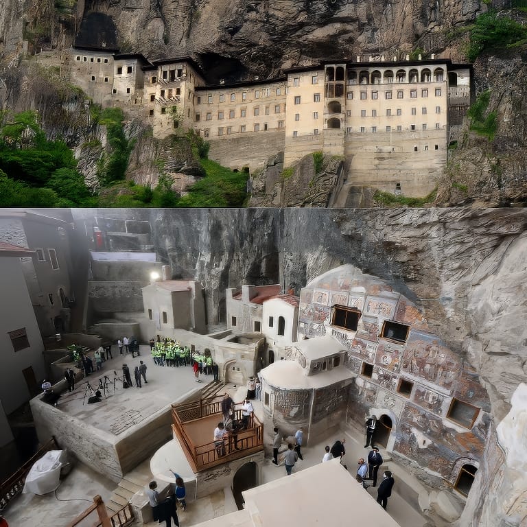 Sumela Monastery, built on a steep cliff on the outskirts of Karadag overlooking the Altindere valley, within the borders of Altindere Village of Macka District of Trabzon, is popularly known as “Virgin Mary” among the locals. Located approximately 300 meters above the valley, the building has continued the tradition of establishing monasteries outside the city, in forests, caves and watersides.