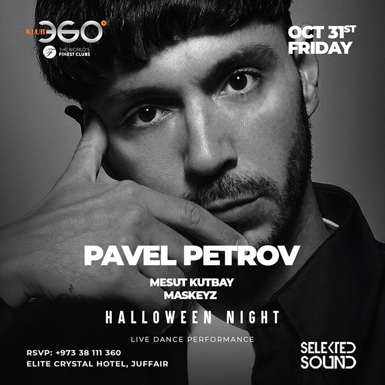 3rd Prize: $100 Bahrain! Halloween just got serious. SelektedBahrain x Klub360 proudly presents: Pavel Petrov – one of the most exciting DJs and producers globally, performing live in Bahrain this Halloween night! From Europe to South America, Asia to the Middle East, he has played massive stages at ADE, Sonus Festival, Ultra Europe, EXE, and top clubs across Berlin, Amsterdam, Ibiza, and Istanbul. EXE Audio Label Boss’s sound has moved thousands — now it’s your turn. Get ready for a high-energy Halloween party with non-stop music, a packed dancefloor, and pure vibes. Halloween Night: Pavel Petrov at Klub 360 at Klub360, Juffair events Nightlife Klub360 Pavel Petrov