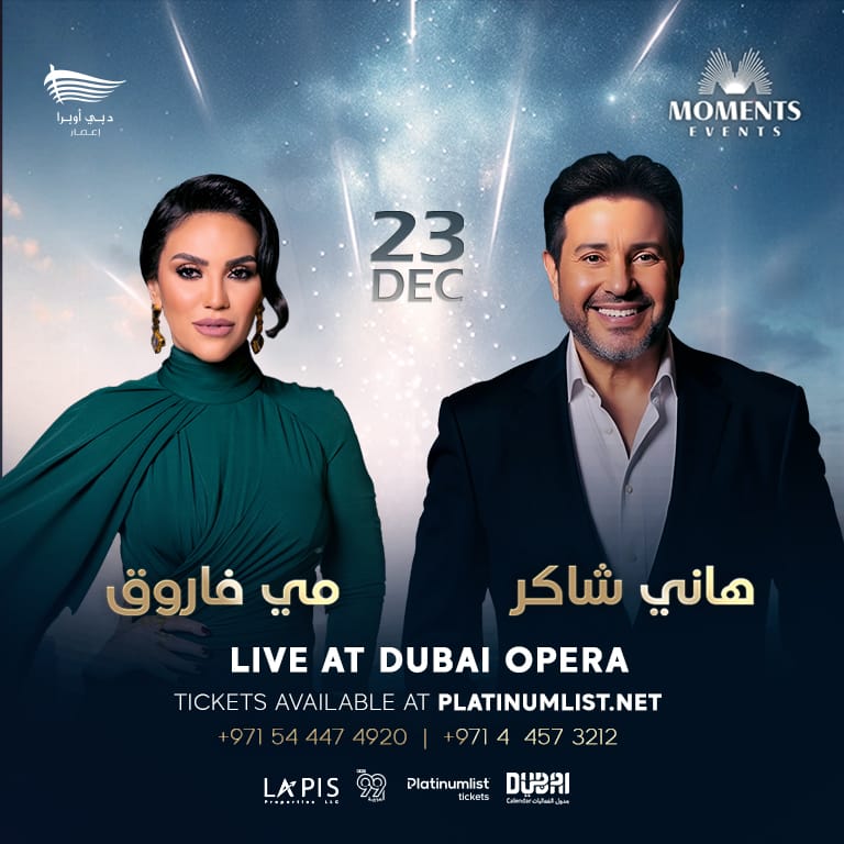 Hani Shaker & Mai Farouk in Dubai Mark your calendars for 23 December in Dubai, UAE, as iconic performers Hany Shaker and Mai Farouk take the stage at Dubai Opera. Hany Shaker, one of Egypt’s most beloved musical legends, has helped define the sound of contemporary Arabic music for over five decades. With a repertoire of hundreds of songs, his style bridges classical roots with a more modern style. From early hits like “Heloua Ya Dounia” to unforgettable tracks such as “Kida Bardo Ya Amar,” “Baasha Dehketak,” and “Albi Maloh,” Shaker’s voice has left an enduring imprint on generations of listeners across the Arab world. Mai Farouk, known for her emotive delivery and rich vocal range, has won acclaim for her interpretations of classical Arabic repertoire. A standout performer of Umm Kulthum’s timeless works, she has earned recognition as one of the finest vocalists of her generation. Some of her most notable songs include her rendition of “Alf Leila We Leila”, “Elly Shafna”, her rendition of “Tab Wana Maly”, and “Kol El Habiba”. From an early age, she rose through Cairo’s musical institutions to build a career celebrated across the Arab region. This promises to be an evening of musical elegance and nostalgia—where two remarkable voices bring the spirit of Arabic music to life in one of the region’s most prestigious venues. Don’t miss this extraordinary event—secure your tickets now for a night of timeless music and lasting memories. Hany Shaker & Mai Farouk in Dubai at Dubai Opera, Sheikh Mohammed bin Rashid Boulevard, Dubai, United Arab Emirates events Concerts Dubai Opera Hany Shaker