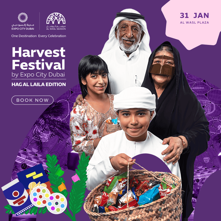 – As Ramadan approaches, join us in the cultural tradition of Hag Al Laila at the iconic Al Wasl Dome, a night of joy, tradition, and unforgettable family moments where music, laughter, and sweet surprises come to life. With all activities included* in your ticket, little ones can light up the night in colorful outfits, sing traditional songs, fill their bags with treats, and take part in hands-on workshops, games, and family-friendly fun around every corner while adults explore a vibrant market showcasing local brands. It’s a night of connection and community spirit at the iconic Al Wasl Plaza, the One Destination for Every Celebration *While supplies last. Harvest Festival Hag Al Laila in Dubai at Al Wasl Plaza | Expo City Dubai, Al Wasl Avenue, Dubai, United Arab Emirates events Festival Al Wasl Plaza, Expo City Dubai