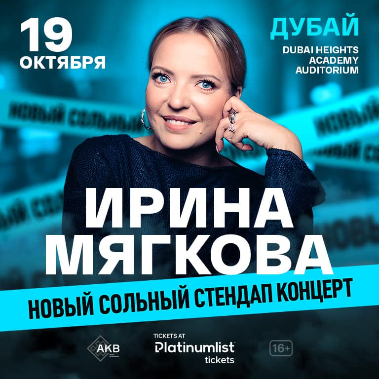 Ирина Мягкова / Irina Myagkova Stand-Up Show at Dubai Heights Academy После более чем годового перерыва одна из самых ярких звёзд российского стендапа представит новую программу на большом сольном стендап концерте впервые в Дубае! Ирина Мягкова – одна из самых популярных стендап-комиков в России, креативный продюсер и создатель и ведущая шоу «Женский стендап» на ТНТ. В начале 2024 года состоялась премьера ее сольного концерта под названием «Сильная и независимая». За время творческой паузы у Ирины произошли интересные события и появились новые мысли, которыми она поделилась в новом концерте, который обещает быть ещё смелее, глубже и актуальнее. Зрителей ждёт свежий взгляд на привычные вещи, остроумные наблюдения и фирменный стиль комика, который полюбился тысячам поклонников жанра. На этом концерте вы найдете отклик в каждом слове! Уникальная возможность для тех, кто давно хотел посетить стендап концерт Ирины Мягковой! Irina Myagkova / Ирина Мягкова Stand-Up Show at Dubai Heights Academy at Al Barsha Road, Dubai, United Arab Emirates events Shows and Theatrical Plays Dubai Heights Academy Irina Myagkova / Ирина Мягкова