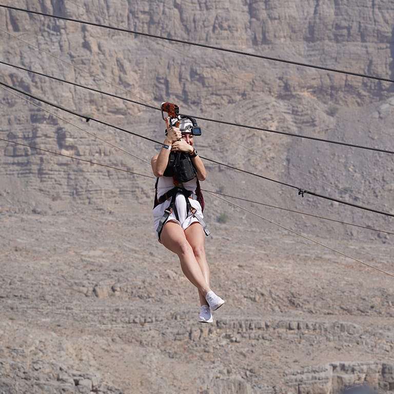Journey across the Hajar mountains using ziplines in this adventure-filled tour. What To Expect Discover The Hajar mountains like never before and experience fantastic aerial views with the Jais Sky Tour, where you will fly from platform to platform using six exciting zip lines. covering a distance of 5km, and walk across the thrilling Sky Bride. Highlights