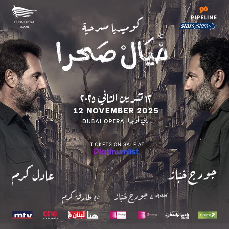 By taxi: You can also take a taxi to Dubai Opera from anywhere in Dubai. If you’re coming from downtown, the journey typically takes around 15-20 minutes, depending on traffic conditions. Lebanese theatre has come back to life in all its forms, and for the first time, two of Lebanon’s biggest names—Georges Khabbaz and Adel Karam—share the stage in “Khyel Sahra,” a social, theatrical production blending drama and comedy, nostalgia and historical commentary. The title is derived from the Lebanese slang “Khyel Sahra,” which refers to someone disregarded or marginalized. Over 80 minutes, Khabbaz and Karam embody two enemy snipers during a ceasefire during the war in 1976. Though fierce opponents in wartime, they become close friends during truces—sharing coffee, stories, memories, and the burdens of life. The performance captures both the absurdity and the humanity of war. Set in the 1970s during the early years of the Lebanese Civil War, the play mirrors reality through the evolving bond of its two main characters. It opens with radio news bulletins announcing a two-day ceasefire. Life resumes cautiously, and the two men meet near the frontline. Their dialogue revives bittersweet memories of a beautiful yet bloodstained past. The collaboration between Georges Khabbaz and Adel Karam marks a milestone in Lebanese theatre. The play touches on national belonging, sacrifice, and emotional struggle without delving into divisive political topics. Both characters evolve from wartime snipers to modern-day security guards, highlighting the psychological residue of conflict. This event is presented by Star System and Pipeline. Khyel Sahra at Dubai Opera at Dubai Opera, Sheikh Mohammed bin Rashid Boulevard, Dubai, United Arab Emirates events Shows and Theatrical Plays Dubai Opera