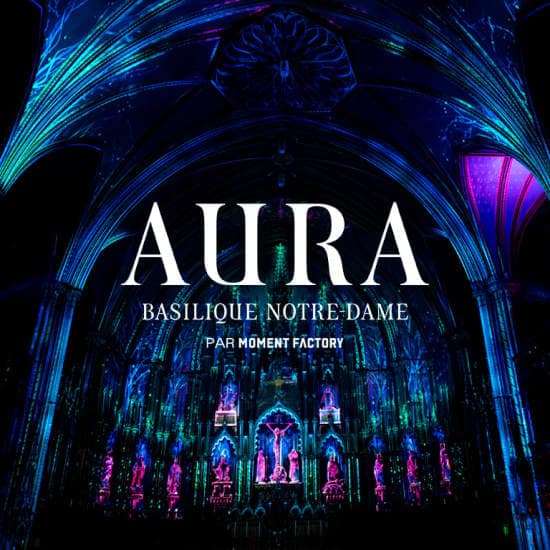 ⭐ AURA est une expérience immersive de sons et lumières, signée Moment Factory, à la basilique Notre-Dame de Montréal. Achetez vos billets maintenant ! Billets pour L’expérience AURA à la basilique Notre-Dame de Montréal Entrée standard – inclut l’entrée à l’expérience Adulte (18+ ) Sénior (65 +) Étudiant Jeune (6-16) Groupe (min. 10 billets) Passe familiale 2 adultes + 1 jeune (6-16) 2 adultes + 2 jeunes (6-16) Entrée gratuite pour les enfants de 5 ans et moins Ce qui vous attend Une expérience immersive grandiose dans la basilique Notre-Dame de Montréal Des projections vidéo à la pointe de la technologie AURA, une production de Moment Factory ayant gagné plusieurs prix* et attiré plus d’un million de visiteurs ⛪ L’occasion unique de venir (re)découvrir un lieu emblématique du patrimoine national Un moment féerique à partager entre amis ou en famille Offrez une carte-cadeau à vos amis et à votre famille en cliquant ici Infos Date et heure : sélectionnez vos dates / heures directement dans le sélecteur de billets ⏳ Durée : approximative totale de 40 à 45 minutes Stations Illuminées : 15-20 minutes (arrivez 15 minutes avant l’expérience pour en profiter) Expérience : 25 minutes Lieu : 110, rue Notre-Dame Ouest, Montréal (Québec) Âge requis : ouvert à tous ♿ Accessibilité : accessible aux personnes à mobilité réduite ❓ Consultez la FAQ de cette expérience ici Description L’expérience AURA est une véritable immersion créée par Moment Factory. Elle permet de découvrir un joyau architectural du patrimoine québécois sous une nouvelle lumière en y célébrant sa beauté exquise. Grâce à des projecteurs et des lasers à la pointe de la technologie, l’enceinte de la Basilique rayonne du sol au plafond. L’expérience AURA accomplit l’impensable : donner vie et mouvement à un lieu intemporel…. Sans plus tarder, achetez vos billets pour L’expérience AURA à la basilique Notre-Dame de Montréal ! * Prix THEA | Outstanding achievement, 2018, Prix Design APPLIED ARTS | Entertainment Arts & Tourism, 2018, Prix NUMIX | Video Mapping, 2018 L’expérience AURA à la basilique Notre-Dame de Montréal at Basilique Notre-Dame de Montréal, Montreal, Canada