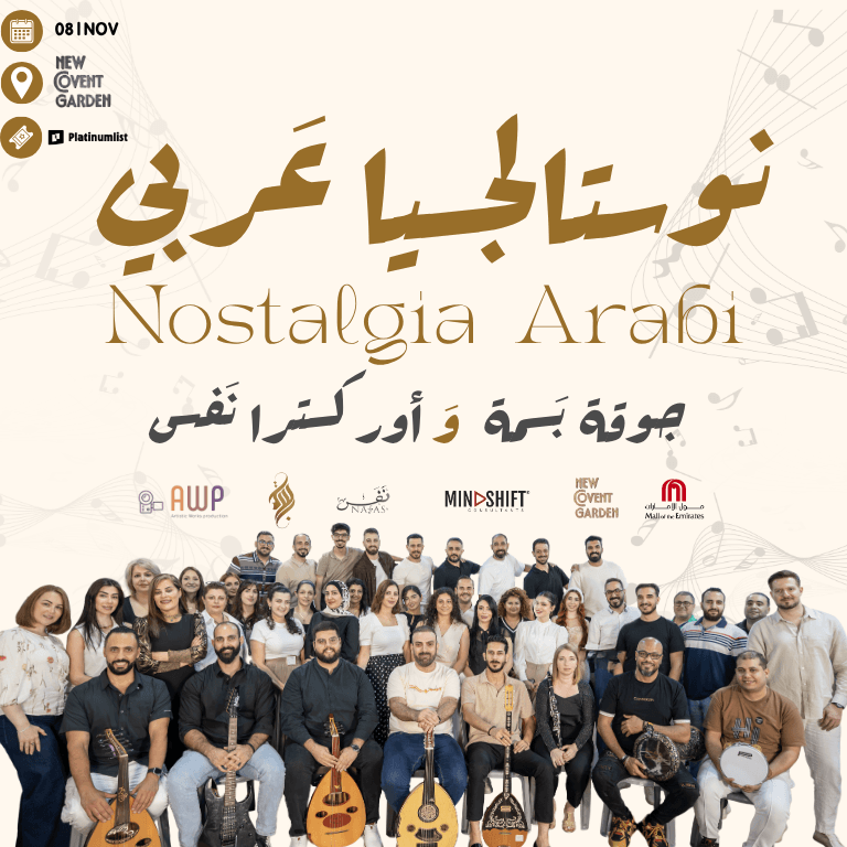 . Join Basma Choir and Nafas Orchestra for a powerful musical journey from the Levant to the Gulf, as Nostalgia Arabi revives the timeless songs that have shaped generations across the Arab world. Featuring 45 vocalists and 35 musicians, this unique concert blends emotional depth, cultural pride, and musical excellence.