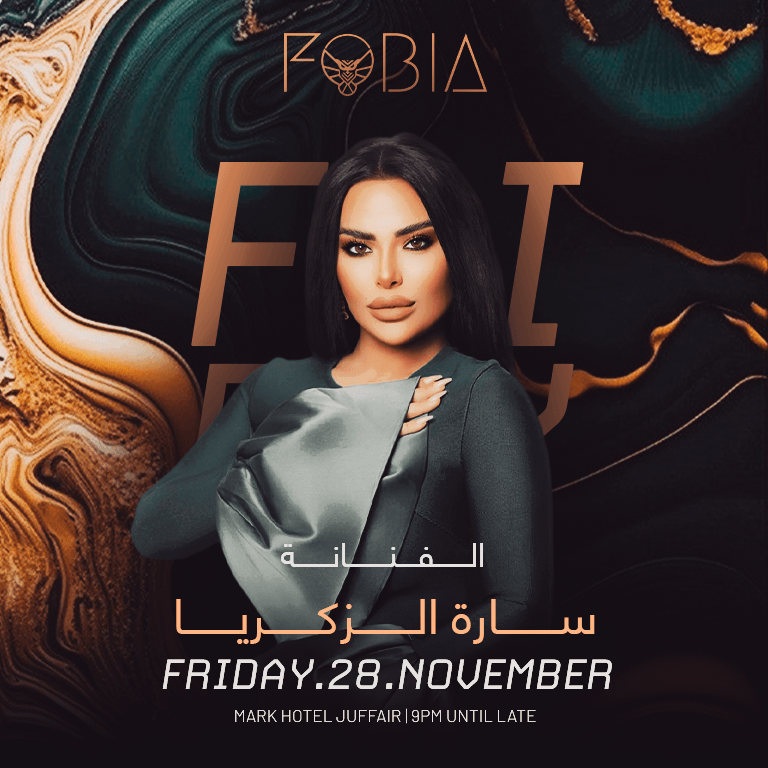Get ready for an unforgettable night as Fobia Club at The Mark Hotel, Juffair, brings you an exclusive live performance by the sensational Sara Al Zakariya on Friday, November 28. Known for her captivating voice and magnetic stage presence, Sara will take over the stage for a night filled with elegance, rhythm, and emotion — creating an atmosphere that perfectly blends luxury and entertainment.