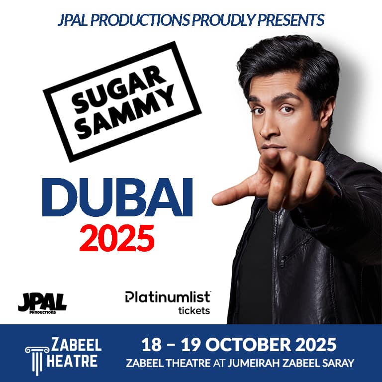 How to get there: By car: Take Sheikh Zayed Road (E11), exit onto Al Safa Street, turn left onto King Salman Bin Abdulaziz Al Saud Street, and find the theater within the hotel premises. By taxi: You can also take a taxi to the hotel from anywhere in Dubai. It’s a popular destination, and most taxi drivers will be familiar with the location. After a long absence, Sugar Sammy is back in the Middle-East with a brand new 100% English show. Sugar Sammy is one of the hottest comedians on the international circuit. The New York Times calls him “A fearless comic with a talent for provoking both laughter and outrage”. He has performed over 2,000 shows in 32 countries.“Fluent in Funny” as the Washington Post describes him, he hits on cultural, social and political themes with great charm and finesse. He is a master of crowd work and audience interaction. Produced by JPAL Productions Sugar Sammy Live at Zabeel Theatre, Dubai at Zabeel Theatre, Jumeirah Zabeel Saray Hotel, Dubai, United Arab Emirates events Comedy Events Zabeel Theatre – Jumeirah Zabeel Saray Sugar Sammy